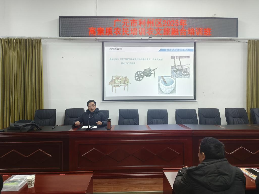 1月20日,广元蜀道文化研究中心王克军教授受邀为“广元市利州区2025年高素质农民培训农文旅融合培训班”开展了《基于需求视域下的农文旅项目策划》和《乡村农文旅资源挖掘及利用》专题讲座。