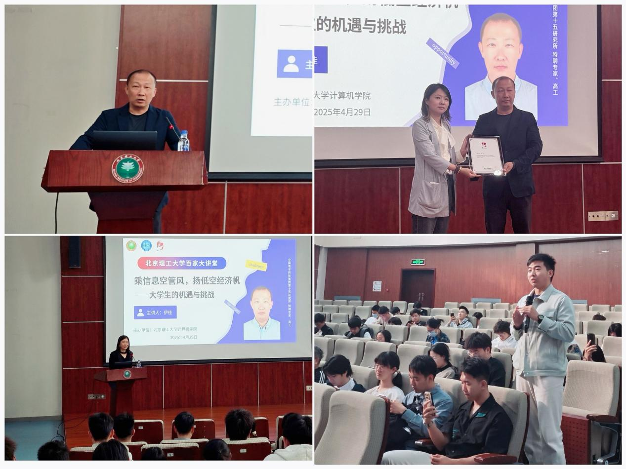 讲座开始前,学校为伊佳颁发“北理工百家大讲堂”聘书。讲座中,伊佳结合自身参与的诸多国家级实际案例,从空管知识科普、低空经济解码、前沿趋势展望等方面,剖析低空经济的技术逻辑与时代机遇,还对低空运营智能化升级等方向展开前瞻性畅想,鼓励同学们以专业知识为基础,在新兴领域寻找个人价值与社会需求的结合点。