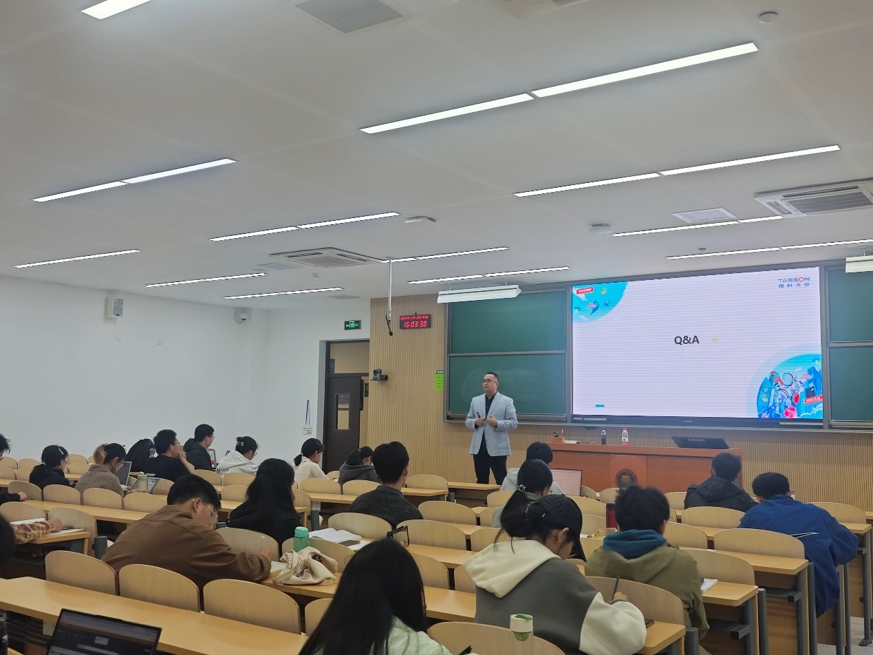 赵洋首先介绍了北京国科天迅科技股份有限公司紧随国家战略,实现高质量发展的发展历程,并从企业核心业务、业务布局、企业荣誉等方面进行了具体介绍。讲座中,他从如何感受一家公司的文化氛围和如何判断一家公司是否有适合自己的职业发展通道和路径两个问题出发,帮助同学们进行职业生涯规划,并在此基础上以莫入夕阳、紧随国运、职业兴趣、擦拭双眼四个要点与同学们分享应该如何选择求职方向。在求职技巧分享中,赵洋以优化简历为核心向大家做了一场内容翔实、干货满满的简历制作培训,以保持真诚、把握机会、呈现逻辑、日常积累、展示自我五个方面向同学们分享了面试技巧。