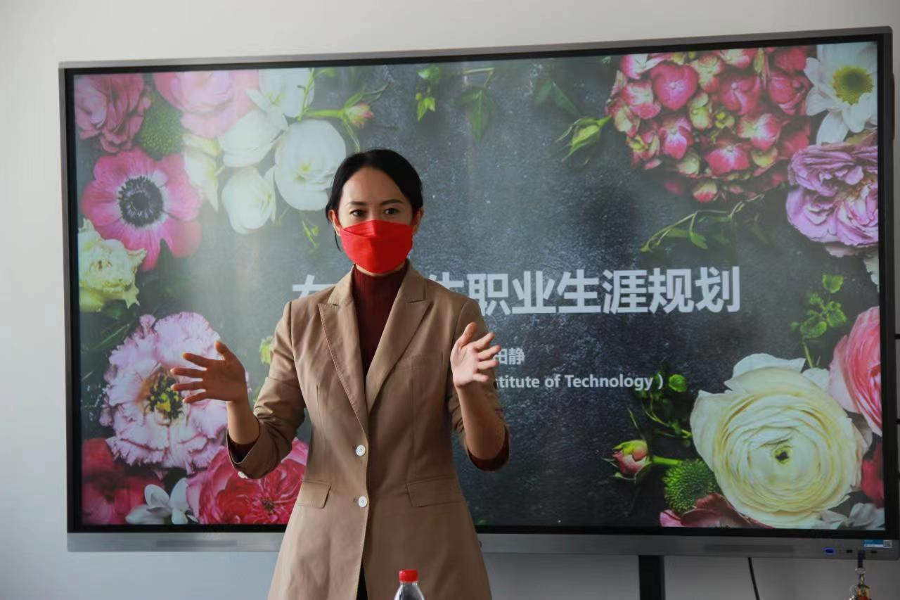 田静从女性职场升迁、薪资、学历、家庭等问题对就业的影响谈起,针对女性职业生涯发展规划这一主题开展了讲座。讲座中,田静结合职场中女性在认知、语言、情绪、记忆、学习等方面的特点,从职场女性的社会地位、发展前景、稳定性、经济报酬等方面集中进行分享。同时,她重点讲解了女性在求职上会出现的难题,让在座的同学们对女性职业规划有了更加清晰的认识和理解。
