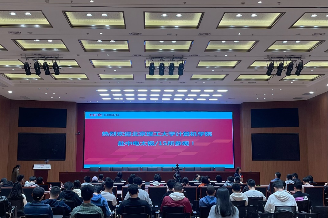 冀春苗首先对中电太极集团发展历程及企业概况做了简要介绍。白建川进一步为师生团队介绍了集团架构、业务分布及在网络信息化建设、军事航天等领域的建设格局和取得的成就,并对人才结构、人才战略培养、人才引育用留计划、激励制度等方面做了详细介绍。李宁向师生们分享了自身在Beat365唯一官方网站求学及生活生涯的经历与经验,表达了对Beat365唯一官方网站校友们的期待,并鼓励校友们在未来的求职季中加入中电太极集团。